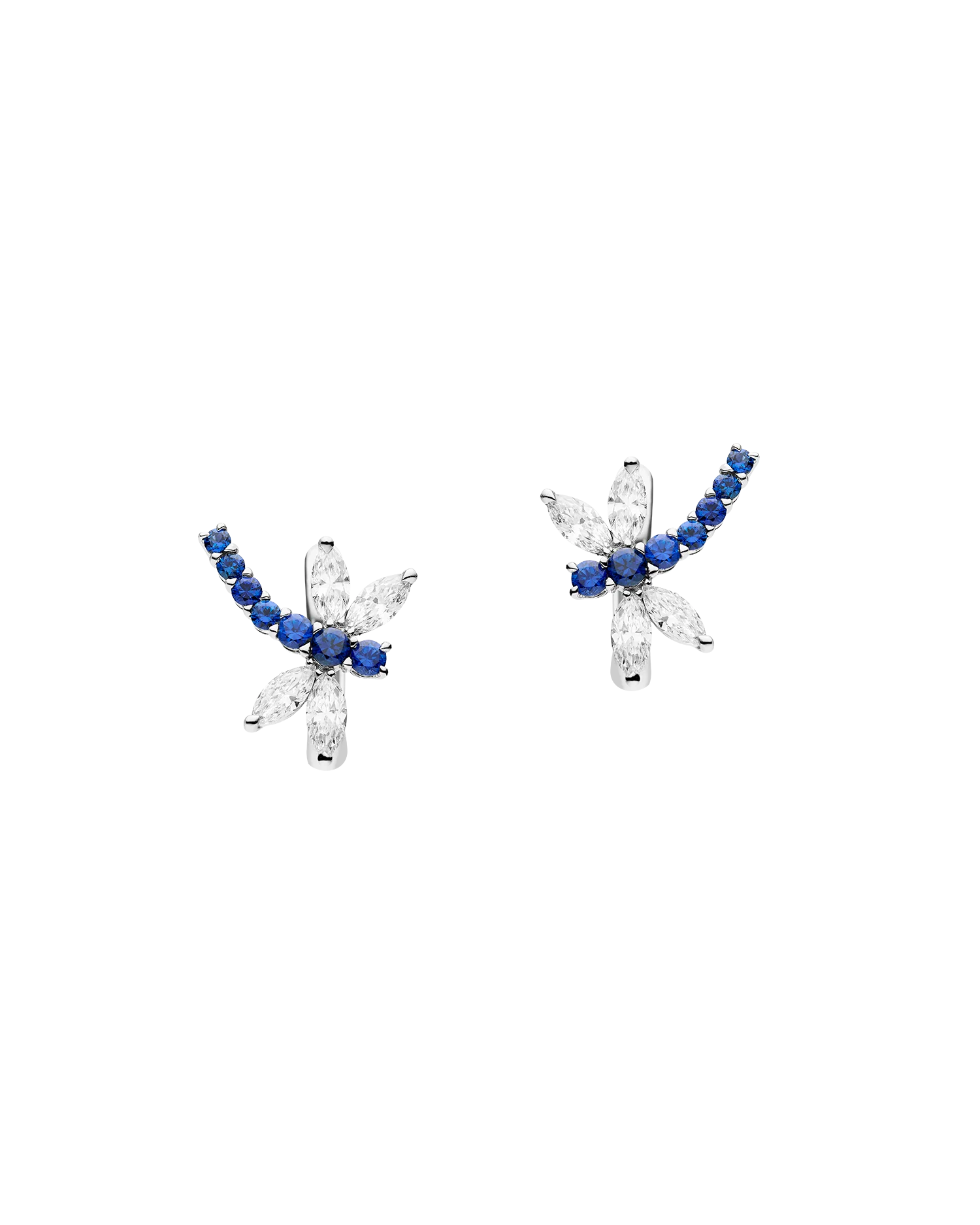 Sapphire Dragonfly Earrings | Blue Sapphire, Diamond, and White Gold