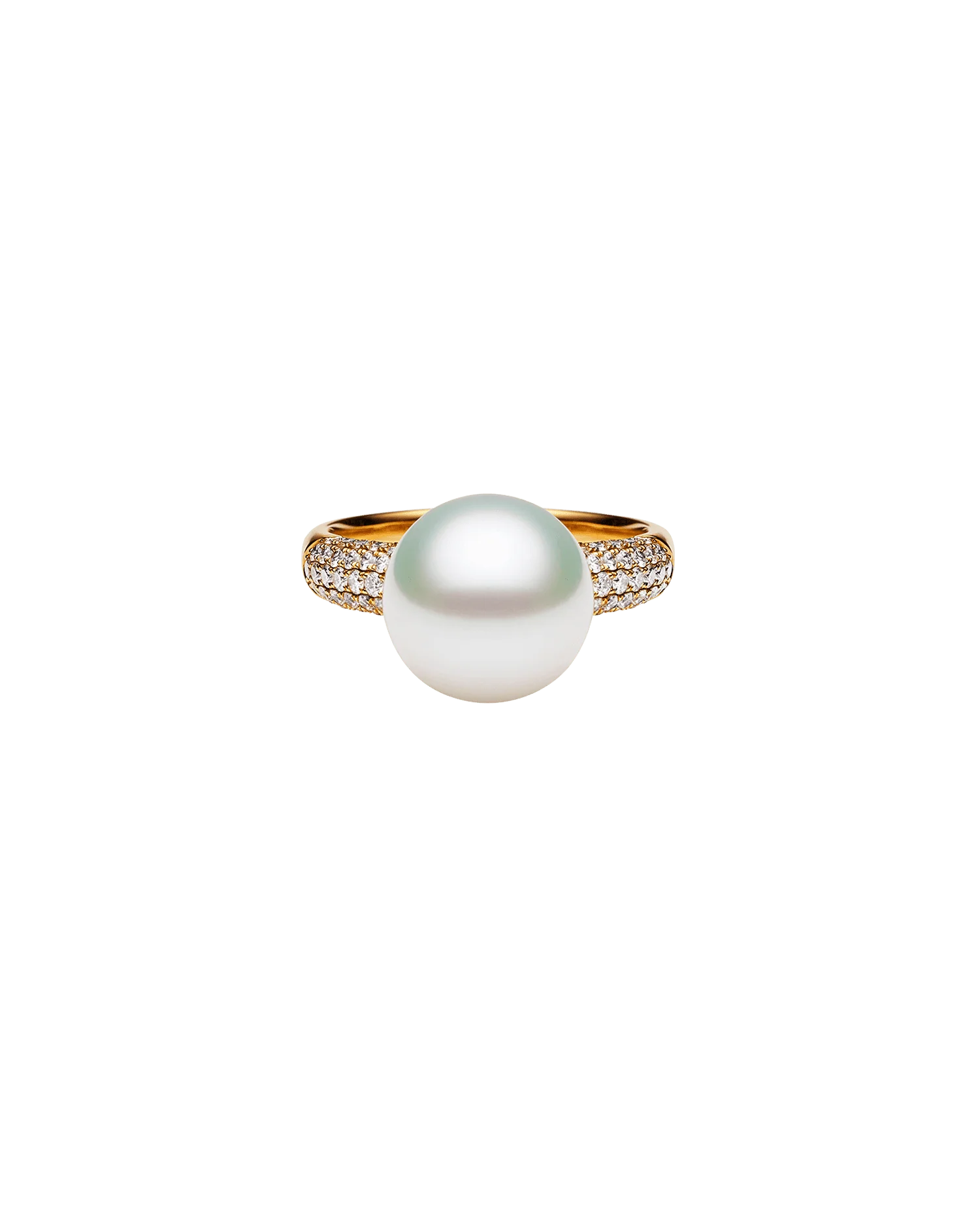 Bella Pearl Ring | 11mm Round Pearl, Diamonds, and Yellow Gold