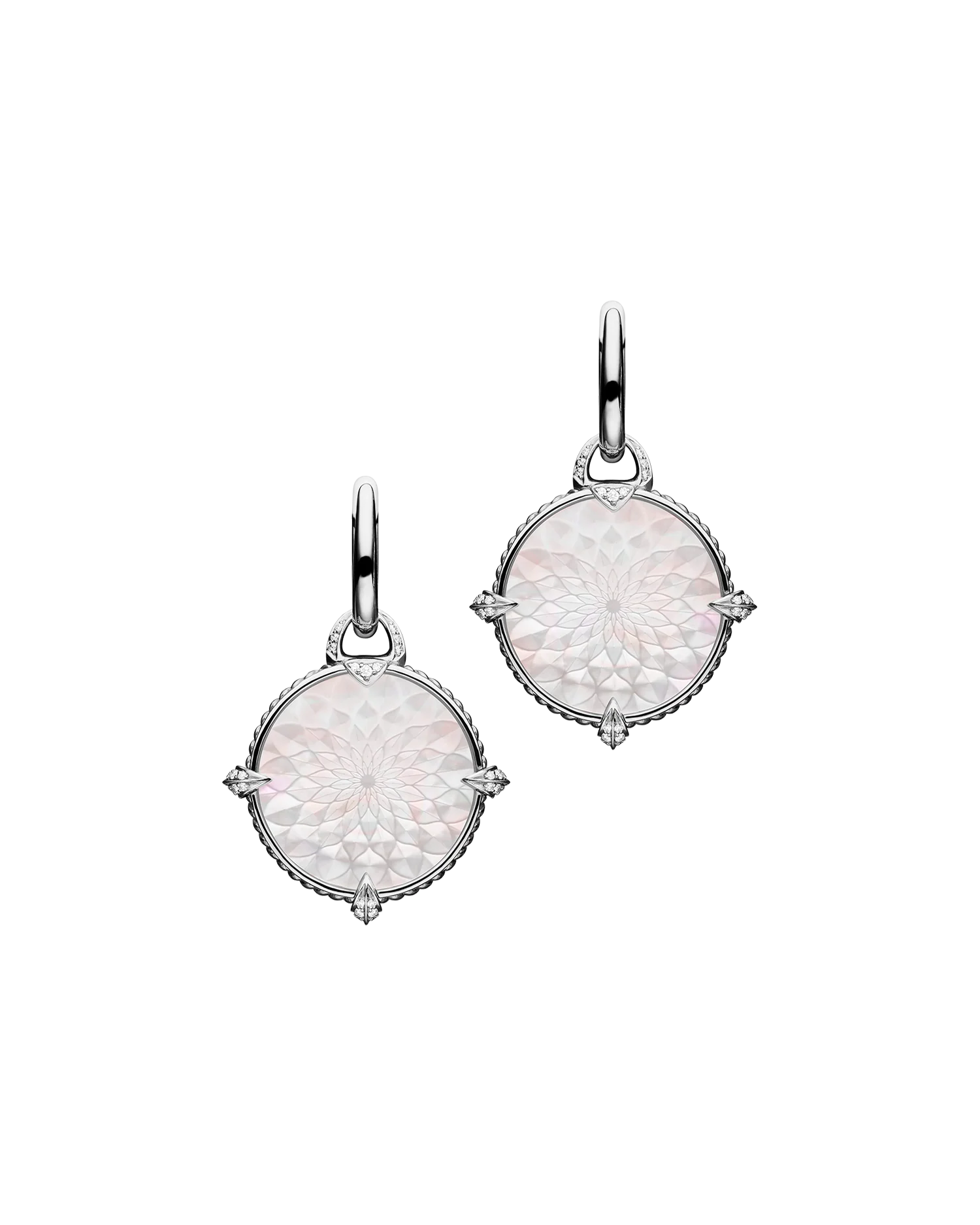 Coin Charm Earrings | Mother of Pearl, Diamonds, and White Gold