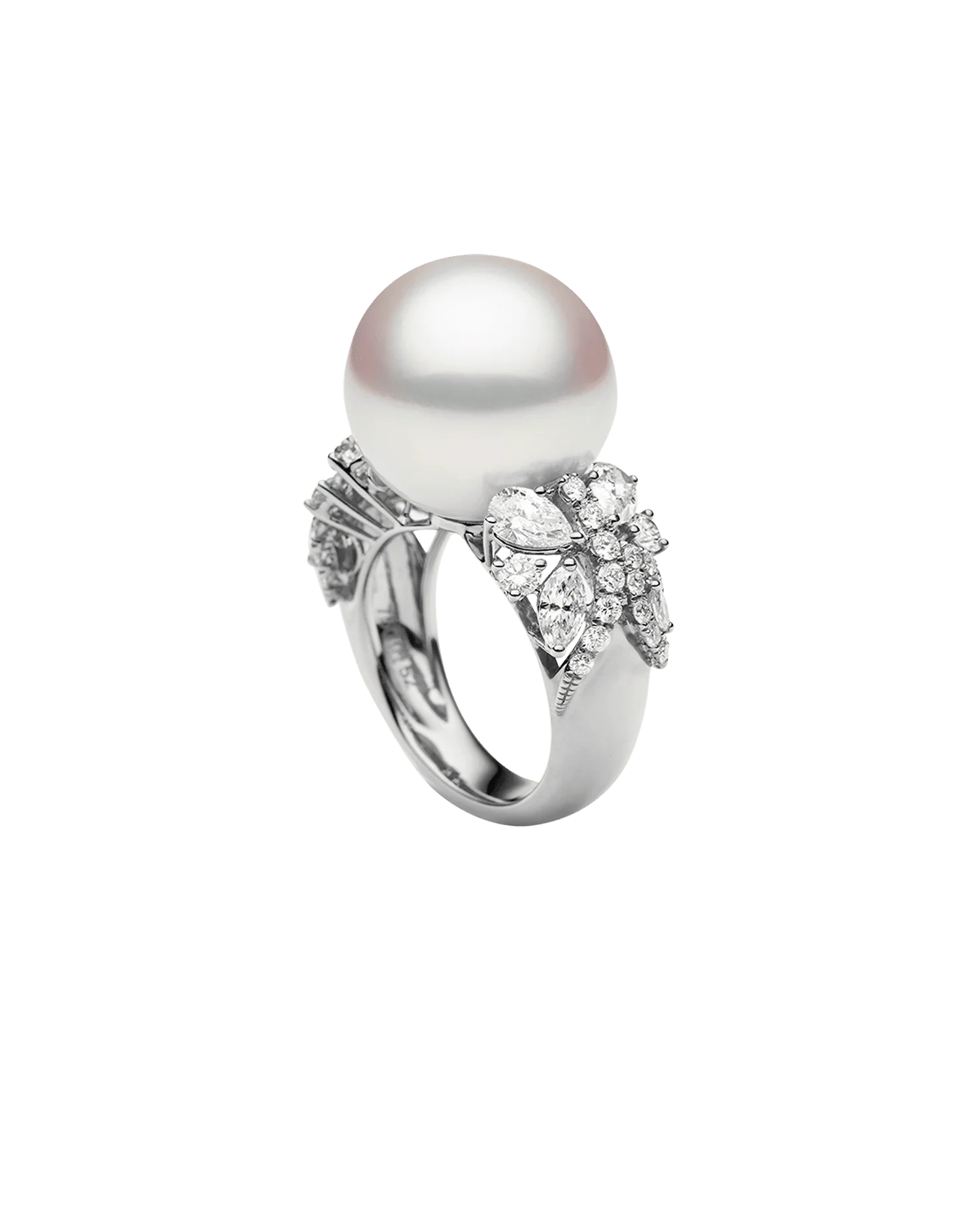 Diamond Dragonfly Pearl Ring | 15mm Round Pearl, Diamonds, and Platinum