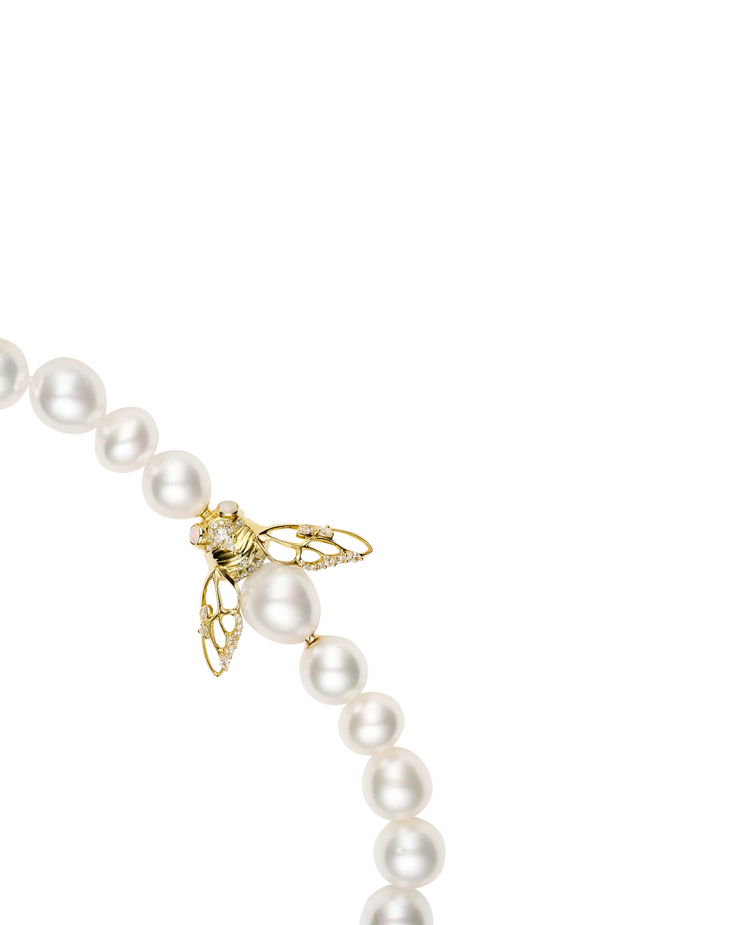 Lacewing Cicada Pearl Clasp | 12mm Drop Pearl, Diamond, and Yellow Gold
