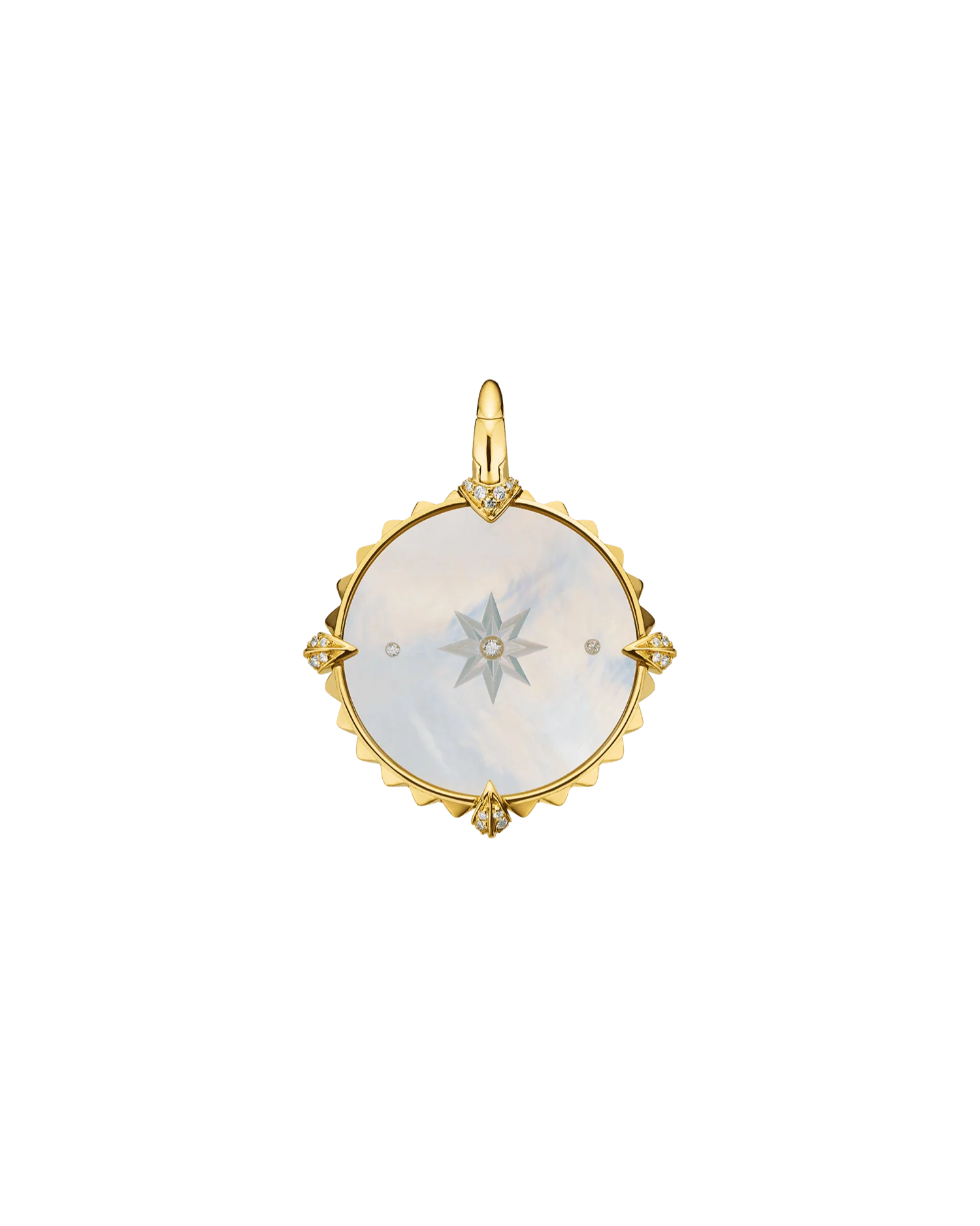 Cancer Coin Charm | Mother of Pearl, Diamonds, and Yellow Gold