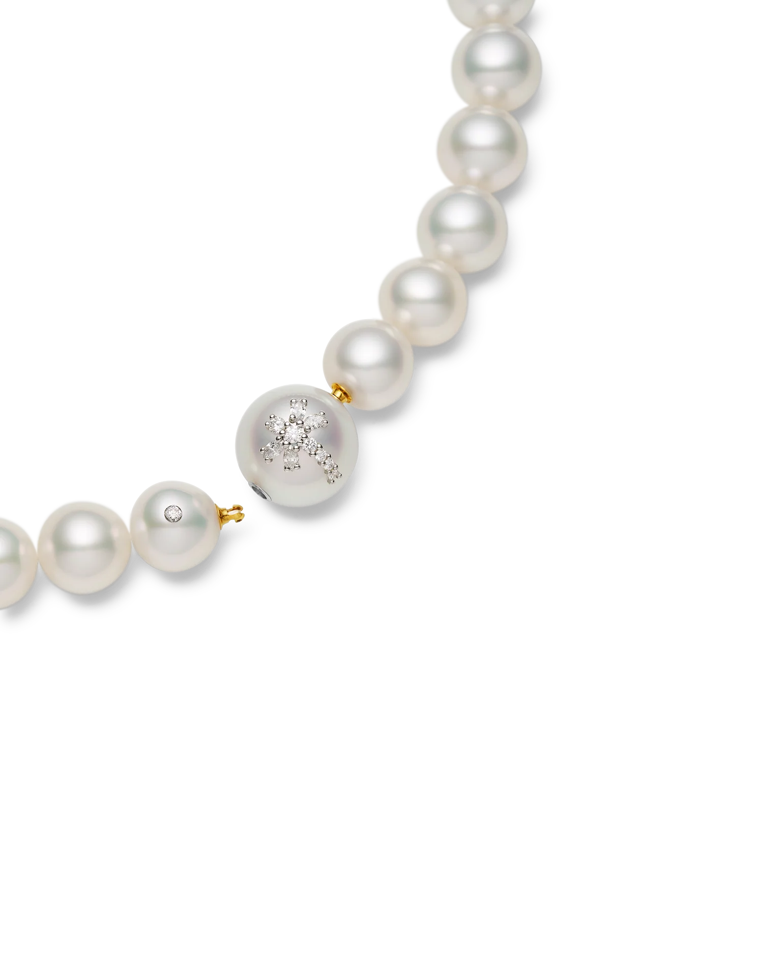 Designed to seamlessly integrate with Paspaley strands, this sculptural clasp transforms your treasured pearl strand into a statement of personal expression. A symbol of harmony between water and sky, immortalised in diamonds and pearls.