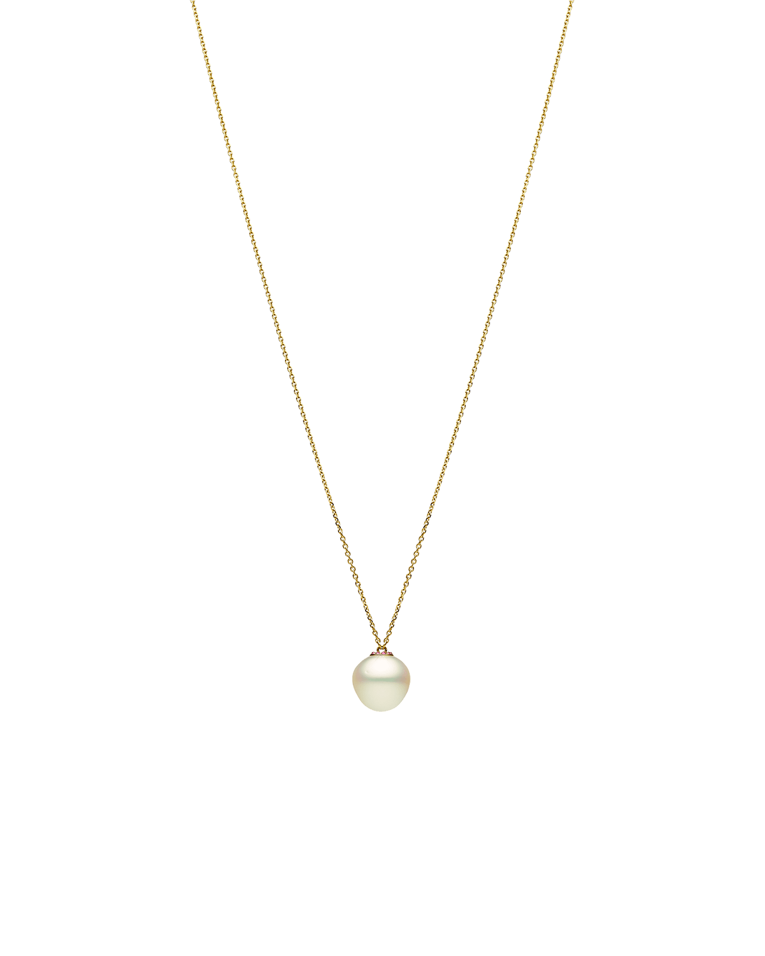 Ruby Touchstone Single Pearl Necklace | 13mm Triangle Pearl, Rubies, and Yellow Gold
